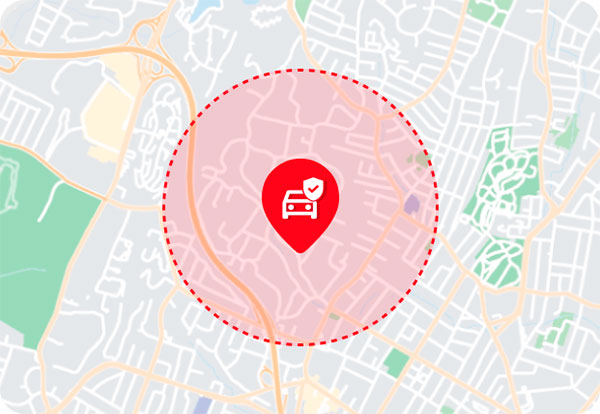 Podés crear una cerca virtual utilizando la posición de GPS del vehículo. Tendrás información sobre la entrada y salida del vehículo en la zona marcada cuando este en marcha. Si se exceden los límites establecidos en el mapa, se enviará una notificación en la aplicación.