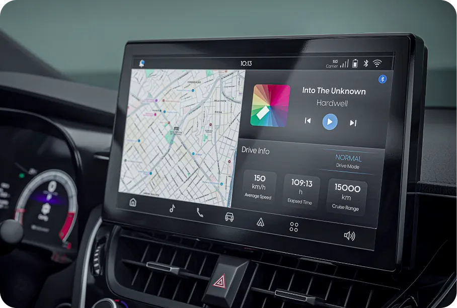 Una pantalla amplia de 10,1” para una mejor visualización de mapas, medios y funciones del vehículo, con diseño moderno y alta definición.